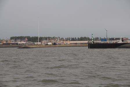 Nachdem es in der Nacht immer mal wieder zu gewittern drohte, wollten wir früh los um die Tide für die Einfahrt ins Friesche Gat zwischen Ameland und Schiermonnikoog gut zu erwischen. Eine kurze Phase des Nachdenkens ging dem Ablegen aber dann doch noch voraus. Ein kurz vor 6 Uhr gestartete Yacht kam eine halbe Stunden später wieder in den Hafen eingelaufen. Denn von Südwesten kam eine kleine Gewitterfront angezogen, die schon recht dunkel aussah und deren Blitze man in der Ferne sehen und den Donner hören konnte. Als klar war, dass dieses „Onweer“ an uns vorbeiziehen würde, machten wir uns gemeinsam mit unserem Päckchen-Nachbarn (zwei Holländer mit einer LM 28) auf den Weg gen Osten. Wir nach Lauwersoog, die beiden Holländer nach Borkum. Später sollten wir Sie aber auch in Lauwersoog wieder sehen, Richtung und Stärke des Windes hatte Borkum für diesen Tag wohl in weite Ferne rücken lassen…