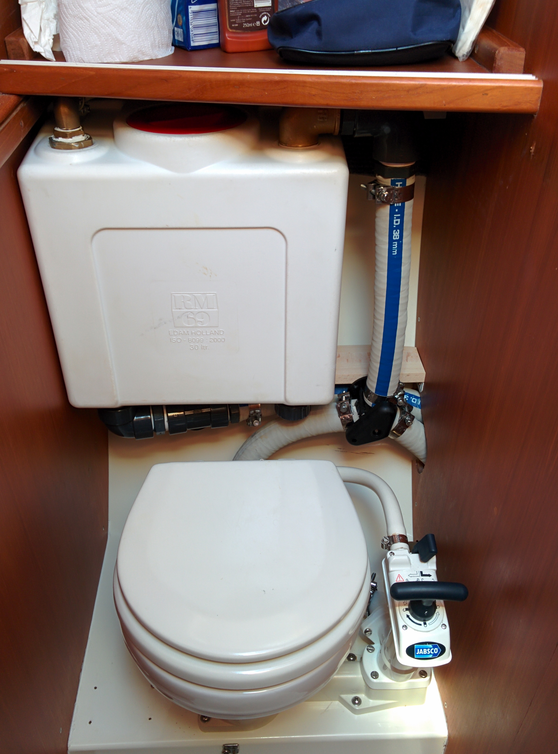 Zwei Dinge konnte ich am Wochenende erledigen. Zum einen habe ich den Einbau meines kleinen Fäkalientanks abschließen können Nach mehreren Anläufen mit verschiedenen Konfigurationen habe ich nun den Tank an Ort und Stelle. Und er ist dicht! Jedenfalls was Flüssigkeit angeht. Ob er auch geruchsdicht ist, wird sich noch herausstellen müssen.