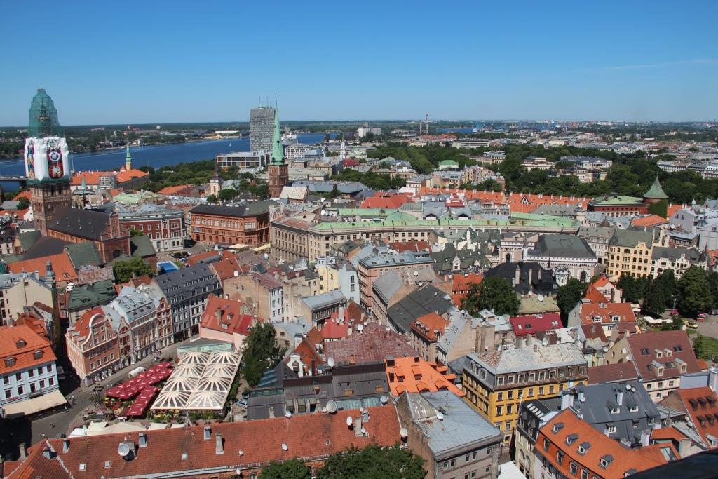 „Rainer hatte uns eingeladen, ihn eine Woche auf seiner Ostsee-Reise zu begleiten. Als guten Einstiegspunkt hatten wir schon vor einiger Zeit Riga festgemacht. Da wir Riga bis zu diesem Zeitpunkt noch nicht kannten, sind wir schon paar Tage früher angereist, um die Stadt kennen zulernen. Eines vorab: Wir können jedem eine Reise hierher empfehlen. Wenn man vom Flughafen in die Stadt hereinfährt, überkommt einem noch etwas „Ostblock-Charme“. Dieses liegt zum einen an den uns unbekannten Schriftzügen auf großen Reklameschilder und an den teilweise doch sehr renovierungsbedürftigen Häusern. In der Altstadt von Riga angekommen, zeigt sich dann ein ganz anderes Bild. Die meisten Häuser sind in einem Top-Zustand und überhaupt fühlt man sich in der Stadt direkt wohl. Was Rainer von Ventpils berichtet hat, können wir für Riga auch bestätigen. Die Straßen sind wie geleckt. Kein Müll, keine weggeschmissenen Kippen und an jeder Ecke ein Abfallbehälter. Hätte ich ehrlich gesagt so nicht erwartet. Riga selbst bietet sehr viel Abwechslung. Sowohl architektonisch als auch kulturell. An vielen Plätzen gibt es Cafés (sehr oft mit Live-Musik) und allerhand Restaurant und sonstige Lokalitäten. Was uns aufgefallen ist, sind die vielen Hinweise auf die deutsche Vergangenheit Rigas. In den meisten Kirchen und auf vielen Plätzen findet man Inschriften in deutscher Sprache. Wir können ein Besuch der Sky-Bar im Hotel Radisson Blue (26te Etage) empfehlen. Hier kann man sich bei einem leckeren Getränk einen guten Überblick über Riga von ober verschaffen und spart sich dabei auch die 9 Euro Eintritt pro Person für den Turmbesuch der Petrikirche (höchstes Gebäude der Altstadt). Wir mussten dann aber doch noch auf den Turm, weil Rainer so gerne auf Türme geht ;-). Aufgefallen sind uns auch die immer sehr gut gekleideten Rigaer (insbesondere die Frauen). Am Freitagabend hat gefühlt jede 2te Frau unter 30 Jahren High-Heels getragen. Ein vor allem für Rainer und mich (Niels) schöner Anblick :-). Die Altstadt von Riga kann man gut an einem Wochenende erkunden. Wenn man auch die anderen Stadtteile kennenlernen möchte (was sich definitiv lohnt), sollte man noch 1-2 Tage dranhängen. Die „Moskauer Vorstadt“ soll z.B. ganz spannend sein, weil nicht so geleckt und eher authentisch. In Deutschland würde man glaube ich „Szene-Stadtviertel“ sagen. Das dann beim nächsten Besuch…“ Dank an Niels für den Gastbeitrag! Und hier noch ein paar „Turmbilder“: