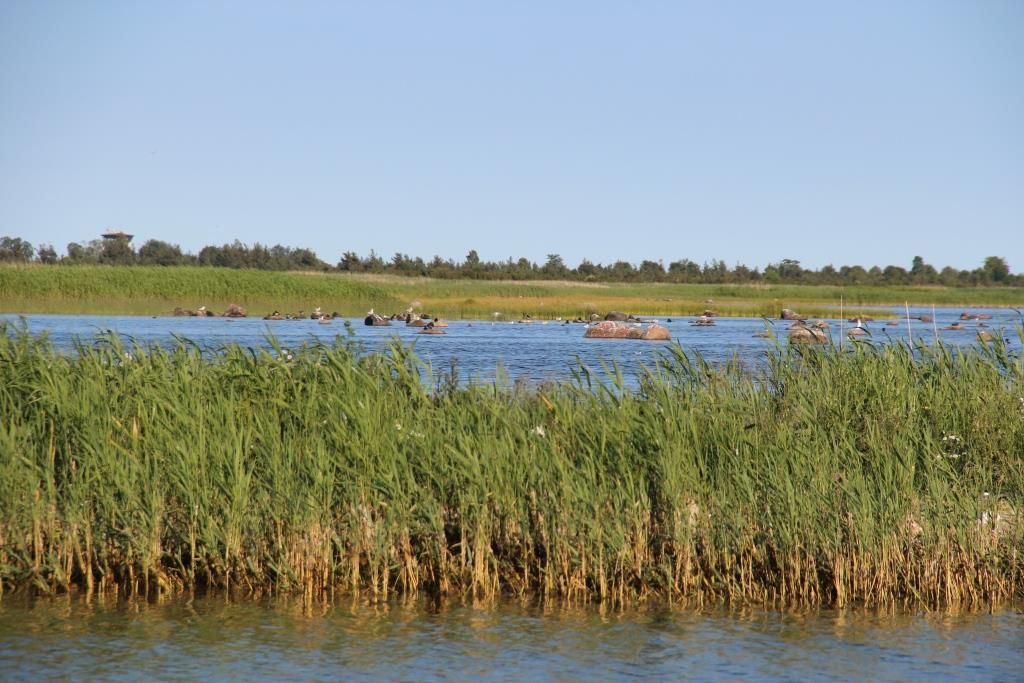 Die letzten Seemeilen in den Hafen von Kuressaare führen durch eine Fahrwasserrinne, die links und rechts durch Kolonien von Möwenfamilien auf Seinaufschüttungen gesäumt wird. Also viel zu schauen. Allerdings sollte der Steuermann dabei nicht den Schiffskurs aus dem Auge verlieren, so wie ich. Ein Hoppeln über einige Steine war die unerfreuliche Konsequenz. Aber alles nochmal gut gegangen. Hoffe ich!