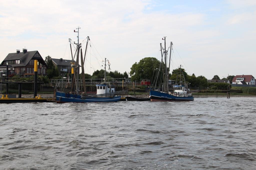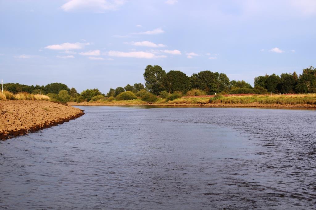 Nach diesem winzigen Ausflug in Bremerhaven ging es dann zur Niedrigwasserzeit auf die Weser raus. Später – fast zu halben Tide – schob der Flutstrom LuMMEL mit gut 7,5 Konten Richtung Süden. Also war es eine schnelle Passage Richtung Oldenburg, denn auch in der Hunte hatte ich noch den Flutstrom im Rücken. Während die Weser mit einigen schönen Strandpassagen und im Strom liegenden Fischerbooten aufwarten kann, ist die Hunte ein eingedeichter und vollständig gebändigter Flusslauf. Jedenfalls im Unterlauf zwischen Oldenburg und Wesermündung. Links und rechts Deiche mit Steinufer, nix wirklich liebliches…