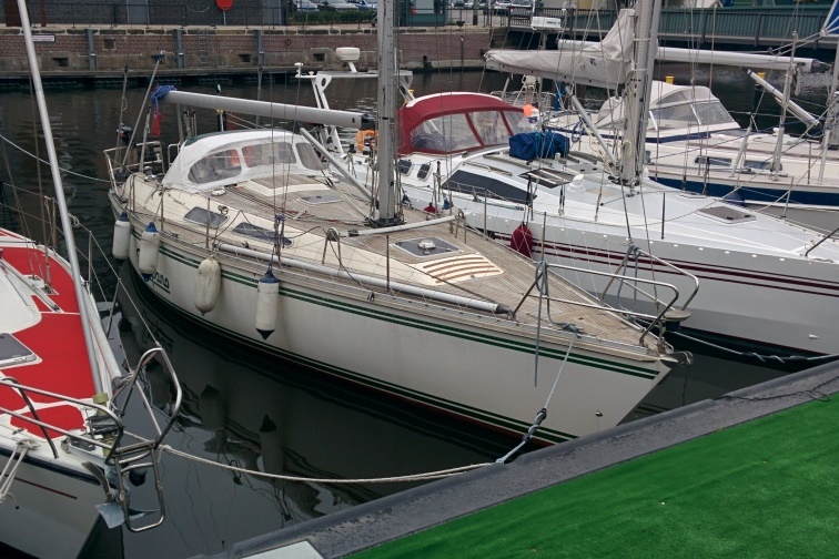 Die verbleibende Zeit von 3 Stunden bis zum Niedrigwasser habe ich dann für Spaziergänge verwendet. Ein erster Spaziergang führte zu einer Tankstelle in ca. 2 km Entfernung. Bewaffnet mit den beiden leeren 5- und 10-Liter-Kanistern ging es los. Auf meinem Weg kam ich am Yachtafen des Weser-Yachts-Clubs vorbei. Da wurden Erinnerungen wach. Von hier war ich als Mitsegler vor einigen Jahren (gemeinsam mit Niels, meinem Mitsegler im Baltikum) das erste Mal nach Helgoland gestartet und von dort zu einem Regatta-Törn nonstop rund Skagen nach Kiel. Natürlich schaute ich nach, ob das Schiff von damals– eine Comfortina 38 namens Zampano – noch dort lag. Ich musste nicht lange suchen…