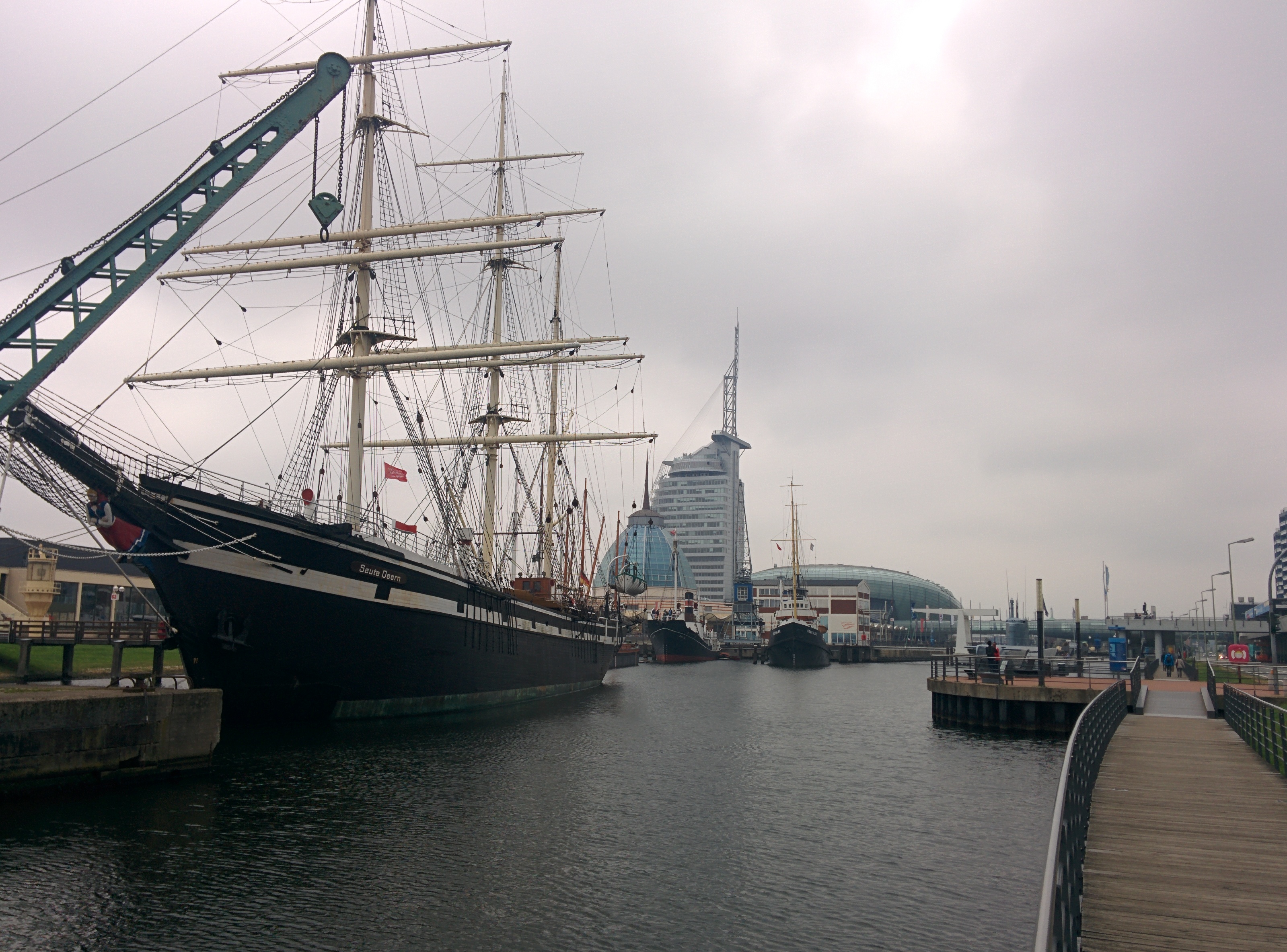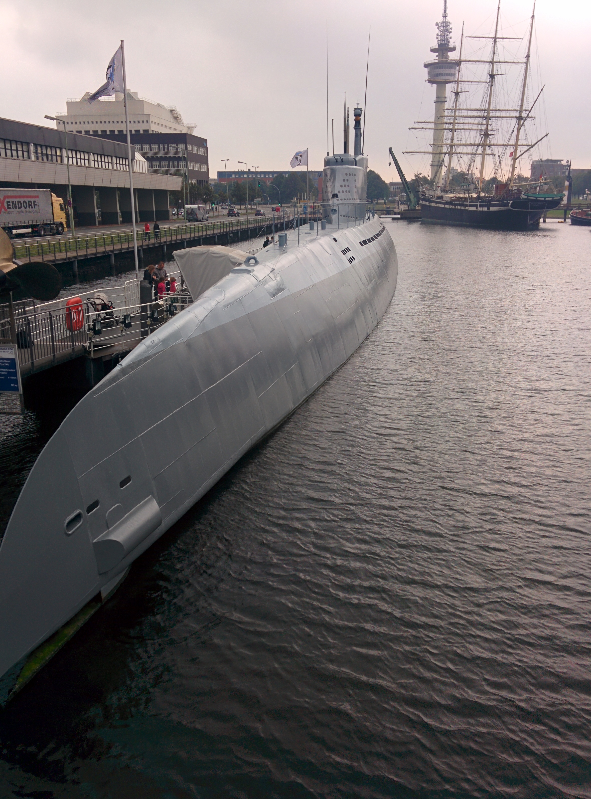 Ein zweiter Spaziergang führte mich noch ein wenig in die Nähe der Innenstadt, um ein paar Lebensmittel einzukaufen. Einen Supermarkt fand ich dann in einem Einkaufszentrum ganz in der Nähe des Schifffahrtsmuseums von Bremerhaven. Natürlich hat eine Seestadt wie Bremerhaven auch einen Großsegler, den man besichtigen kann, die Seute Deern. Und auch ein U-Boot ist zu bestaunen.