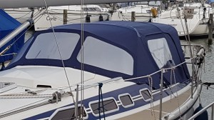 Um den Wohnraum des Schiffes ein wenig zu vergrößern und um insbesondere an regnerischen Tagen etwas mehr Lebensraum zu haben, hatte ich mir im Herbst auch noch eine neue Kuchenbude nebst einer neuen Sprayhood fertigen lassen.