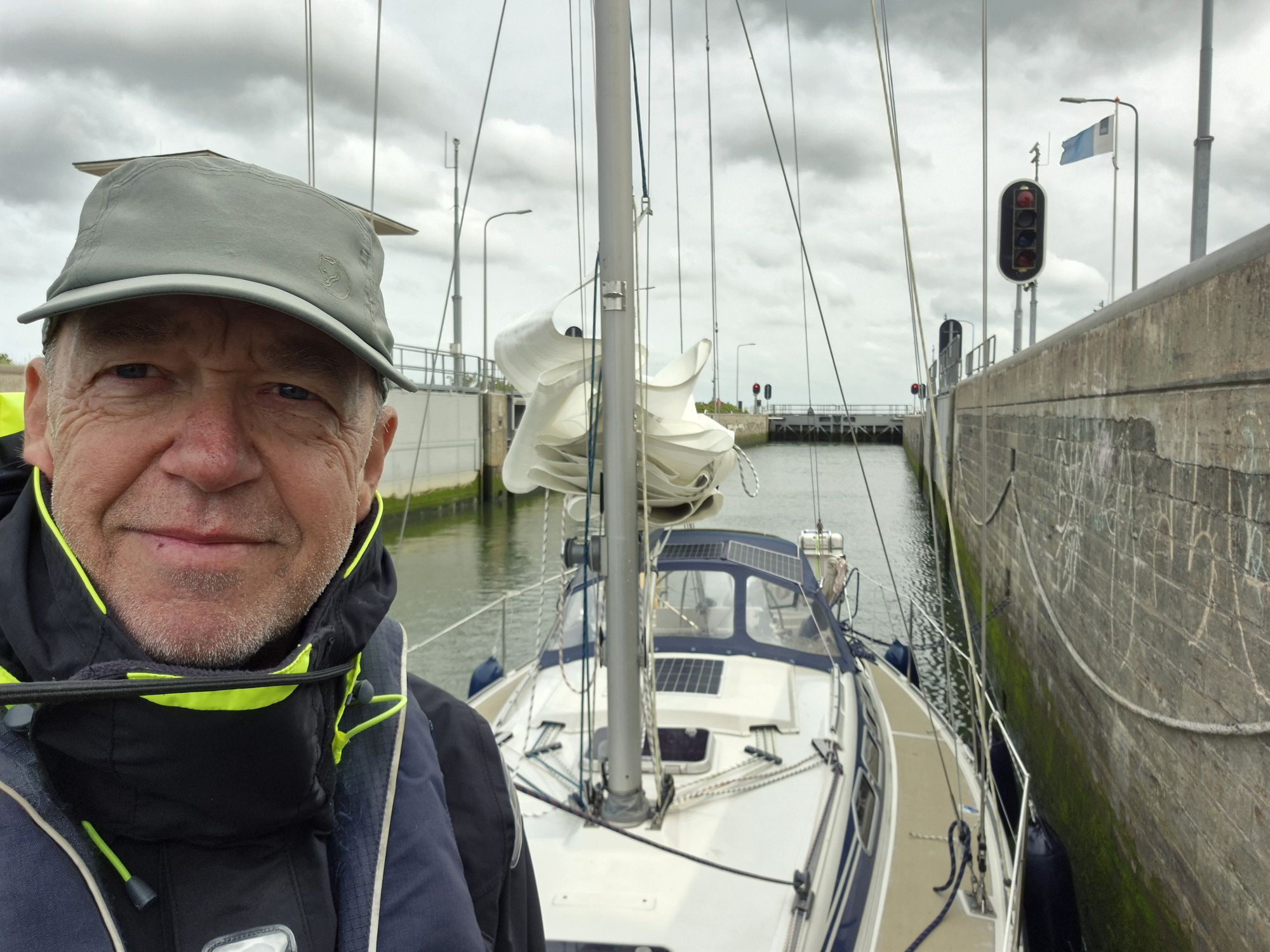 Also ging es nach der Verabschiedung von Annette los. Raus aufs Ijsselmeer (wo leider meine Brille auf Grund gegangen ist, habe aber Ersatz dabei), dort durch die letzte Schleuse ins Watt und zwischen Den Helder und der Insel Texel hinaus auf die Nordsee. Und es wurde der erwartete Törn. Immer hoch am Wind (jetzt wissen auch die Nicht-Segler, was das bedeutet 😉) von einem Wellenkamm durch das Tal auf den nächsten Wellenkamm und so weiter für ca. 30 Stunden…