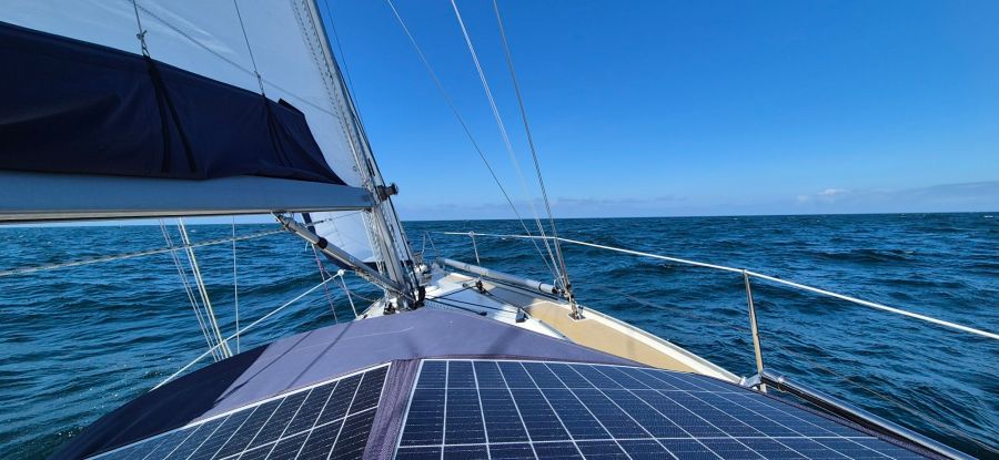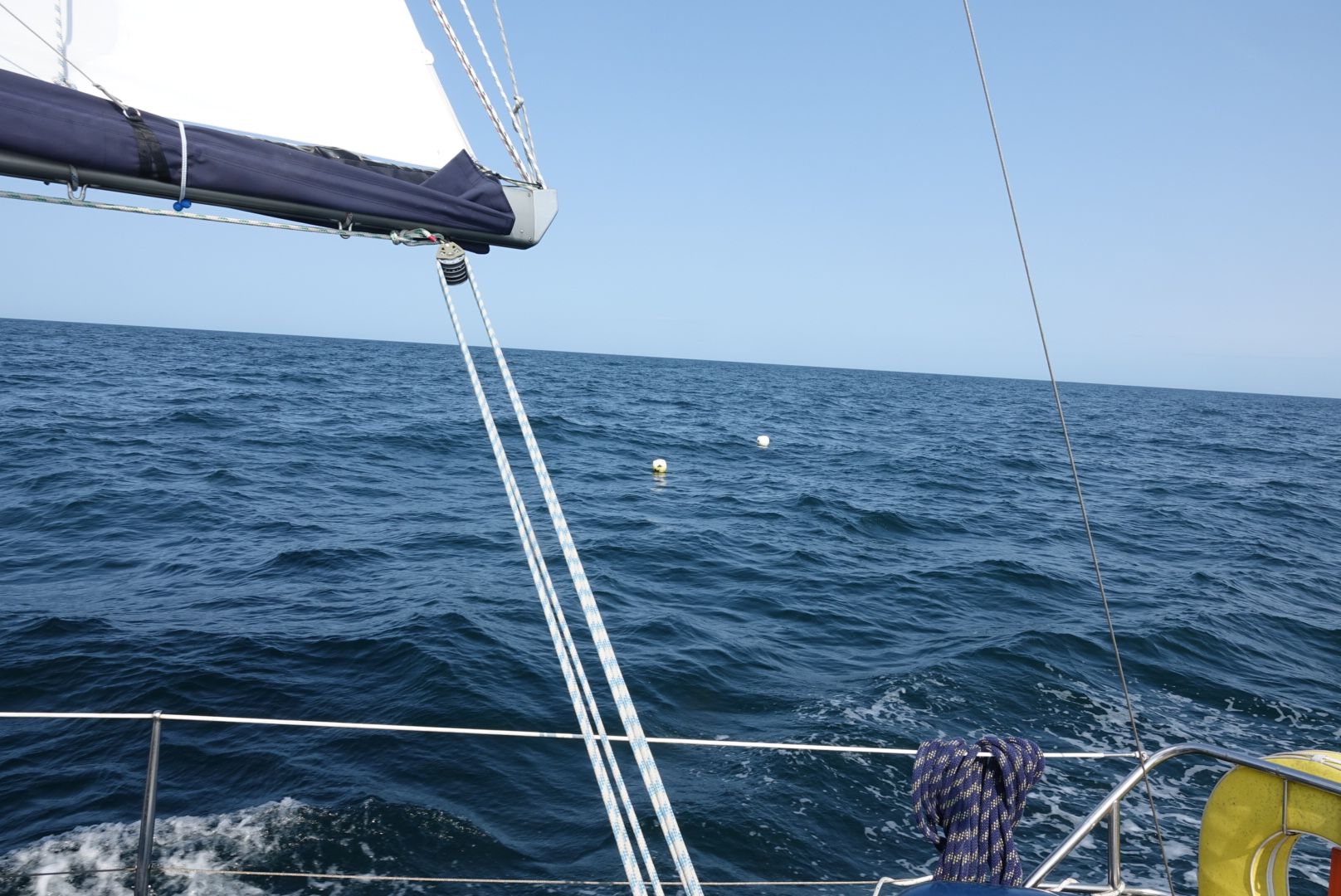 Also ging es nach dem Kaffee und der Freigabe per Funk durch die Port-Control hinaus auf die Nordsee. Mit dem ablaufenden Wasser ging es dann mit ein paar anderen Seglern im Konvoi Richtung Norden. Schnell haben die sich aber am Horizont verloren… hinter mir 😊