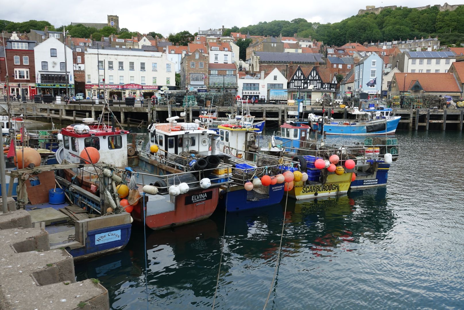 Nach der Ankunft um 4:30 noch ein kurzes Frühstück mit Bier und Käsebrot und für ein paar Stunden in die Koje. Auf meinem anschließenden Rundgang durch Scarborough habe ich vergeblich nach Spuren der „Scarborough Fair“ gesucht. Nur einen Markt habe ich gefunden, aber dort gibt es nicht mal mehr einen Fischhändler… Alles in allem ist Scarborough eine Urlaubsküstenstadt in der es ab Juli wohl recht „busy“ ist. Davon zeugen jedenfalls die vielen Spielhöllen, Fastfood-Shops und Souvenirläden an der Promenade…