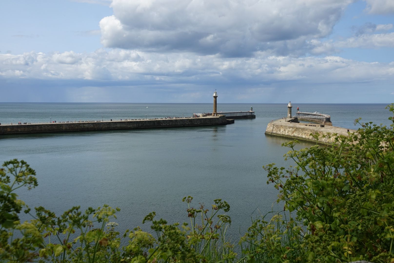 Nach 4,5 Stunden war Whitby erreicht. Eine schöne Hafeneinfahrt durch die großen Wellenbrecher, vorbei an der Whitby-Abbey, die auf einem Hügel über der Stadt thront. Weiter entlang der Promenade, durch die Swing-Bridge bis zum Yacht-Hafen, wo mich schon der Hafenmeister erwartete, mir einen Platz zuwies und beim Anlegen half. Toller Service!