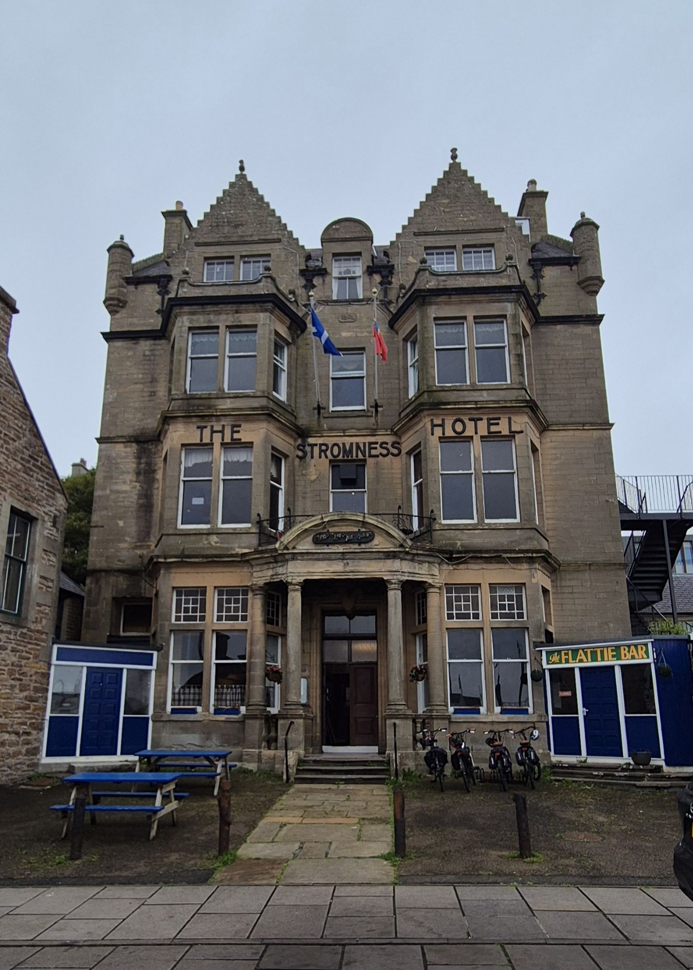 In Kirkwall reichte meine Umsteigezeit noch für eine ganz kleine Fahrt zum Hafen, um das dort liegende Kreuzfahrtschiff zu knipsen. Zu mehr hätte ich auch keine Lust mehr gehabt. Dusche, Essen im Pub und Bett. Mehr nicht für heute…