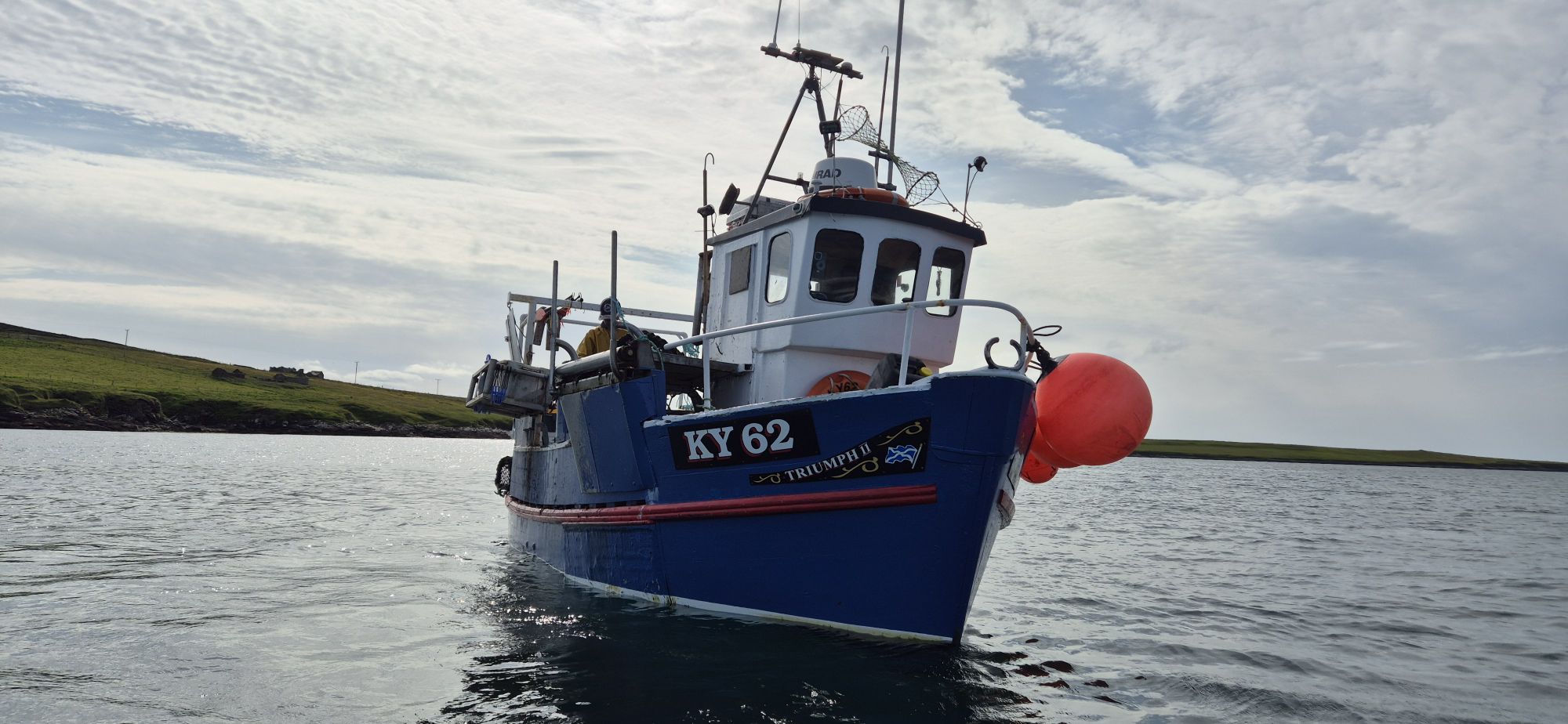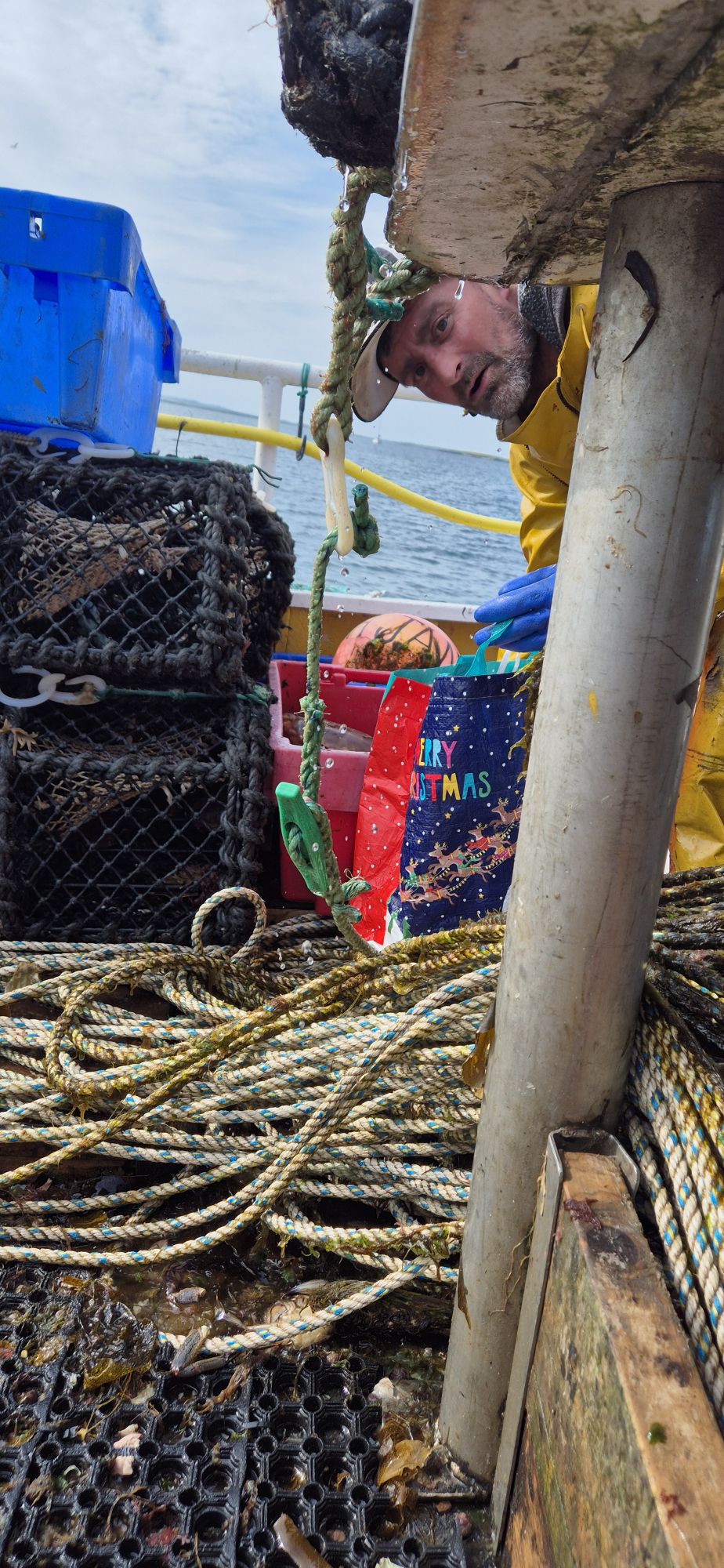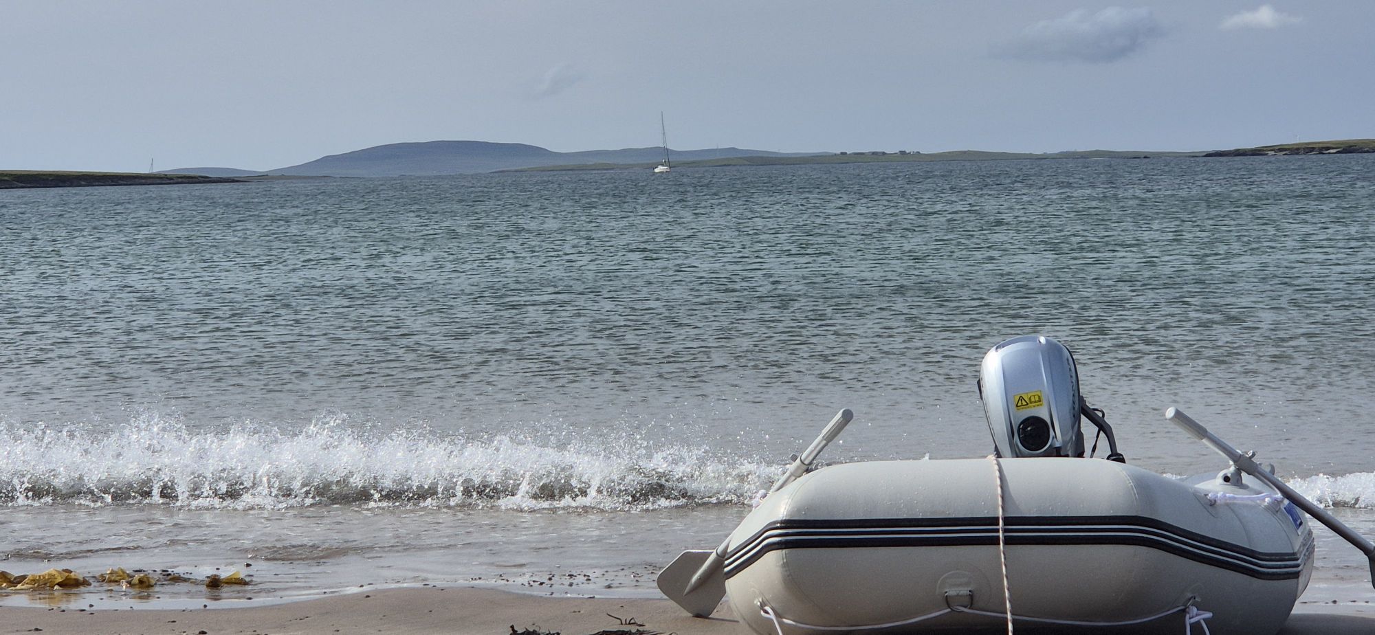 Nun lag ich hier vor einem weißen Strand und war natürlich neugierig einmal einen Landgang zu unternehmen. Also musste das Dinghi aufgepumpt werden, der Motor aus der Backskiste gekramt und alles zu Wasser gelassen werden. Auf dem Weg zum Strand bin ich zu meiner Freude auf einen Fischer getroffen, der gerade seine Lobster-Pods eingeholt hatte. Ich habe ihm ein wenig zugeschaut. Plötzlich ruft er rüber und fragt, ob ich ein paar Taschenkrebse haben möchte. Ja gerne, aber wie bereitet man die zu? Seine Erklärung in feinstem schottischem Englisch habe ich dann nicht komplett verstanden, nur sowas wie „20 minutes boiled water…“, aber für den Rest gibt es ja Chefkoch und Youtube (man glaubt es nicht. 4G ist hier fast überall verfügbar, mindestens aber LTE). Obendrein gabs es noch einen Pollack (sowas wie ein Dorsch), der an Bord sogleich für morgen filetiert und auf Eis gelegt wurde.