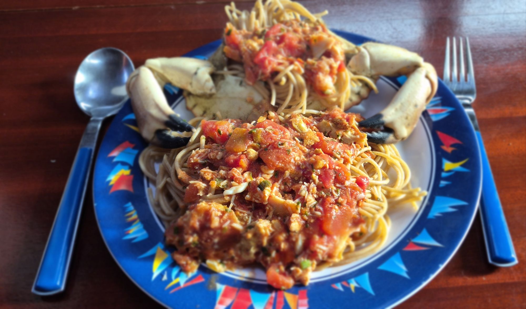 Nach einem kleinen Besuch am menschenleeren weißen Sandstrand ging es zurück und sofort in die Kombüse zur anstehenden Premiere: Kochen eines Taschenkrebses und die Entnahme seines Fleisches. Ich habe mich dann für ein Rezept nach eigener Kreation entschieden: Vollkornnudeln (gekocht in echtem schottischem Nordseewasser) mit Tomaten-Krebsfleisch-Ragout. Lecker war es!