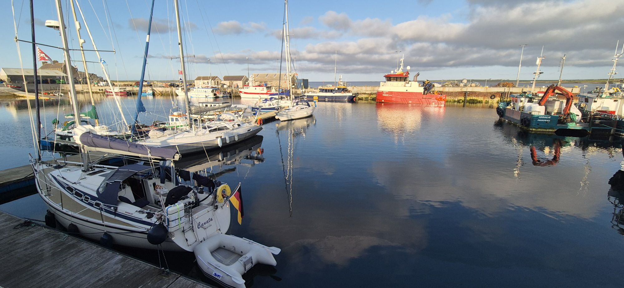 Ein kleiner Arbeitshafen mit ein paar Yachtliegeplätzen. Von hier aus werden vorwiegend die vor der Insel Westray liegenden Fischfarmen versorgt und bewirtschaftet.