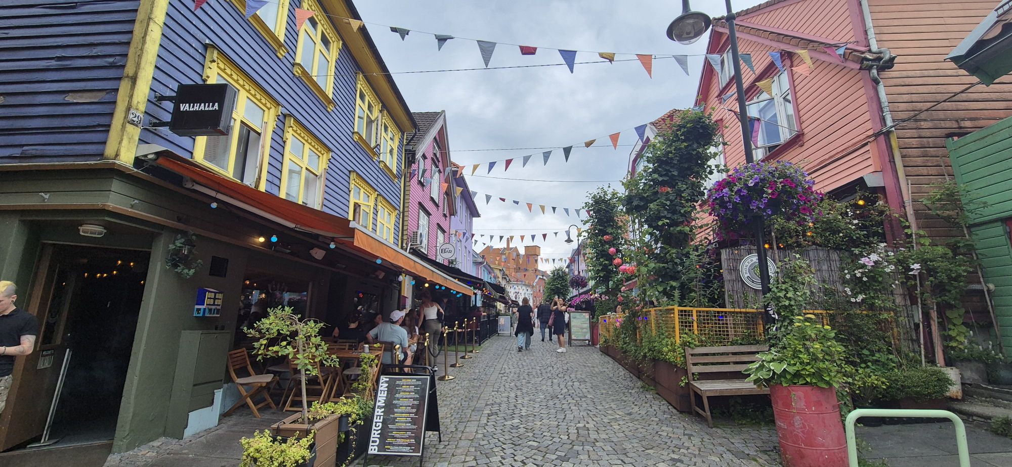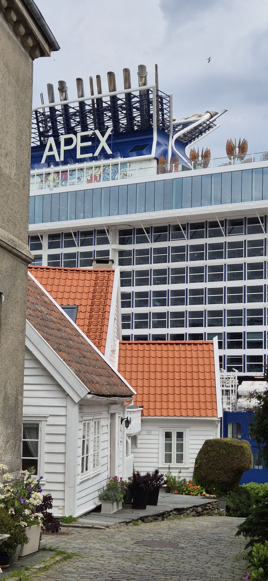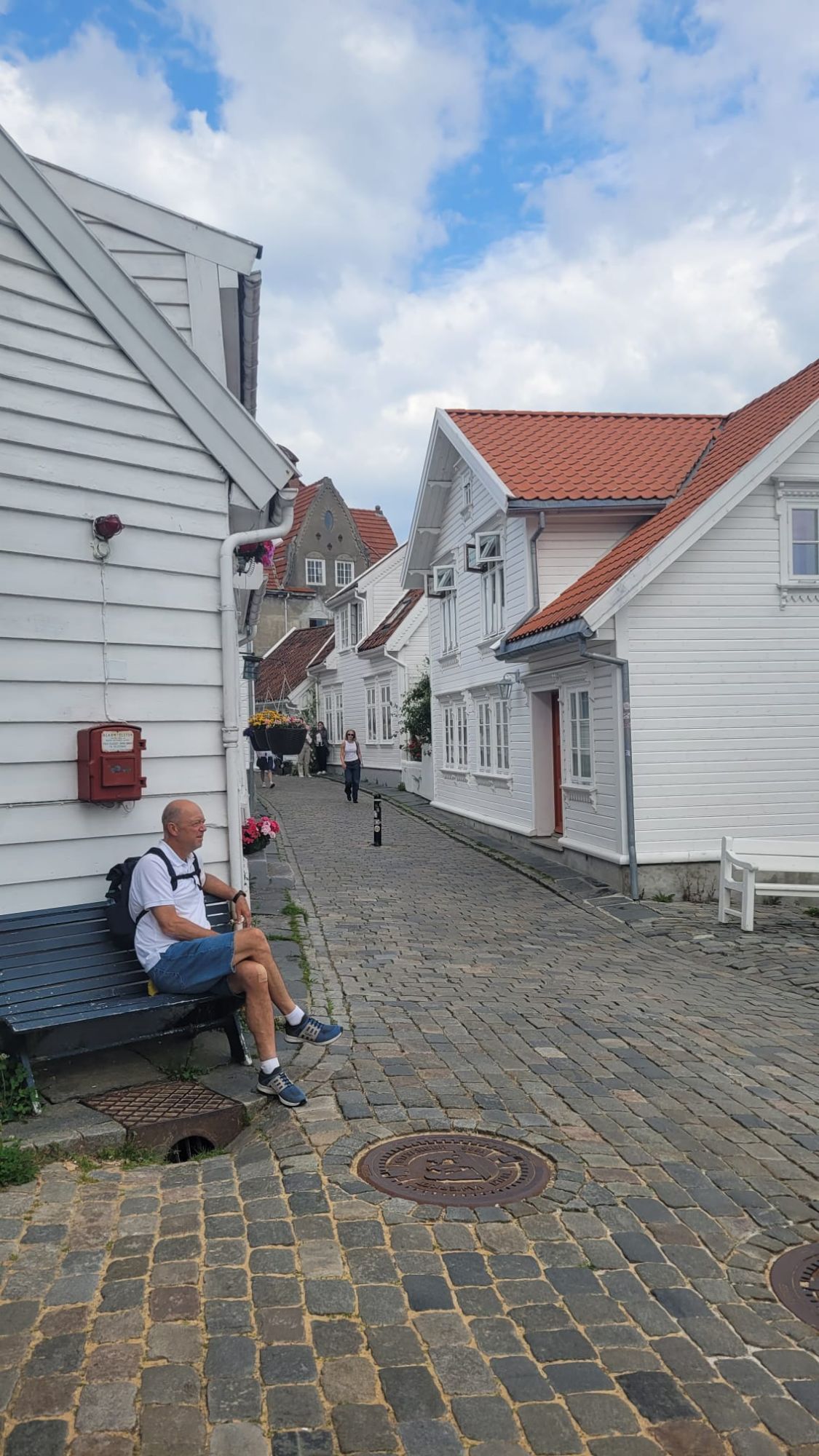 Stavanger hat uns bei unserem zugegebenermaßen kurzen Besuch irgendwie besser gefallen als Bergen. Es wirkte trotz der Anwesenheit eines Kreuzfahrtschiffes nicht ganz so voll und irgendwie gemütlicher als Bergen. Eine schöne Innenstadt mit den bunten Häusern in Fargegaten, dem Dom, dem Valbergtarnet, einem Feuerwachturm und natürlich das Gamle Stavanger mit den weißen Holzhäuser, die heute vom besagten Kreuzfahrtschiff ein wenig dominiert wurden. Und immer wieder ein wenig Street-Art an Hausfassaden, machten den Besuch sehr kurzweilig. Alles an einem halben Tag gut zu Fuß zu erreichen. Gut so, denn nach dem halben Tag öffnete Petrus auch wieder die Schleusen und wir verholten uns in ein Restaurant und aßen zu Gourmet-Preisen einen Burger mit Pommes und für den Preis eines Spitzenweins ein Lagerbier, bevor es mit dem Bus wieder zurück nach Tananger ging.