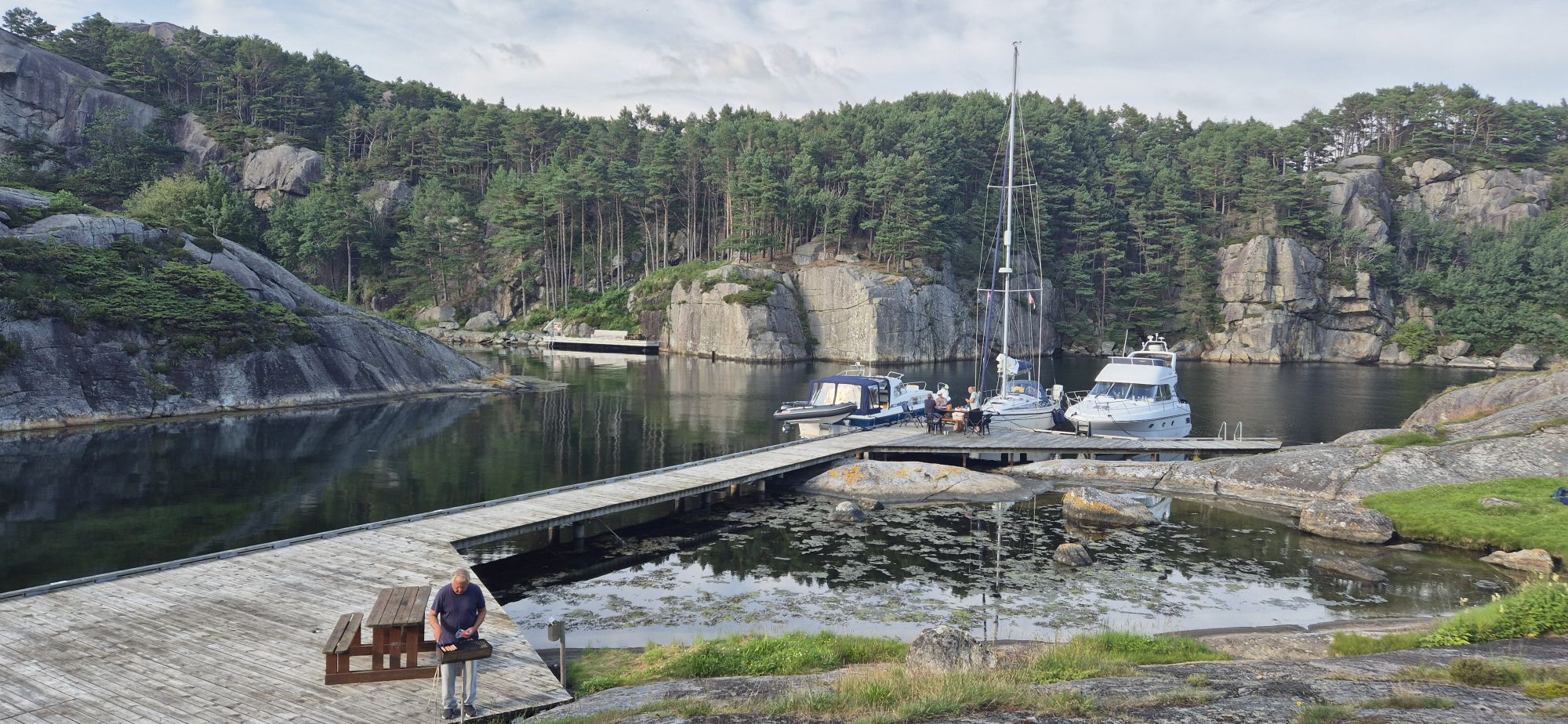 Nachdem wir unser Sightseeing im Lysefjord beendet hatten, sind wir nach einem kurzen Tankstopp am Ausgang des Lysefjords in Forsand noch herrlich den Høgstfjord bei einem schönen 3er Nordwestwind herauf Richtung Stavanger Schärengarten gekreuzt. Dort wollten wir uns einen Anker- oder Stegplatz auf einer der zahlreichen größeren oder kleineren Inseln suchen.