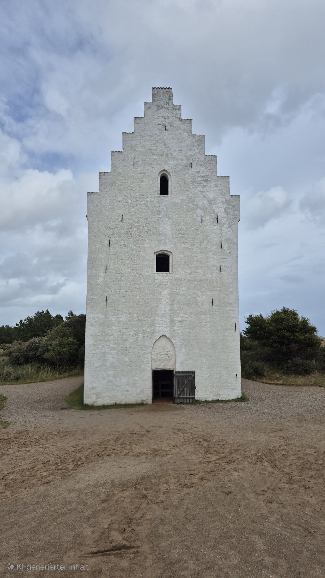 Und der Weg nach Skagen hatte sich gelohnt. Sicher eines der Highlights der Woche. Zwar verlief der Radweg in weiten Teilen auf gut ausgebauten Fahrradwegen entlang der Straße, aber irgendwann bog er in die Dünen ab und verlief durch sandige Heidelandschaft vorbei an einer versandeten Kirche, bis wir schließlich die Räder abstellen mussten und die letzten Meter bis Grenen-Odde, dem nördlichsten Punkt Dänemarks, zu Fuß zurückzulegen. Überrascht war ich dann doch über die vielen Menschen, die wie wir das Skagerrak und Kattegat aneinander plätschern sehen wollten. Fast so voll wie ein paar Wochen zuvor am Preikestolen, aber nicht minder lohnend. Der Sturm machte es sicher noch ein wenig eindrucksvoller als an ruhigeren Tagen.