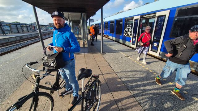 Hatten wir auf dem Hinweg meistens Rückenwind, so wäre der Rückweg mit Gegenwind eine Qual geworden. Einen kleinen Vorgeschmack könnten wir auf dem ca. 3 Kilometer langen Rückweg von Grenen-Odde zum Bahnhof von Skagen bekommen. Fast stehengeblieben bin ich bei der einen oder anderen Böe, so dass ich froh war, dass wir uns auf dem Rückweg nach Frederikshavn der dänischen Eisenbahn bedienen konnten.