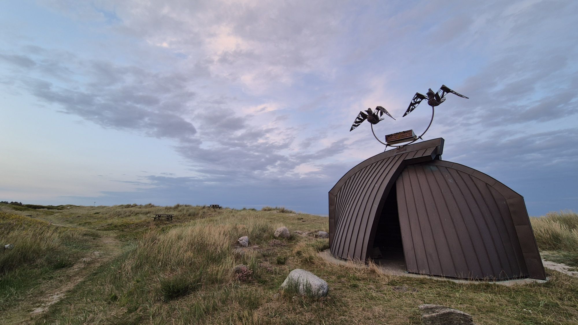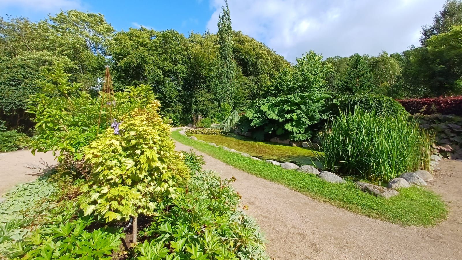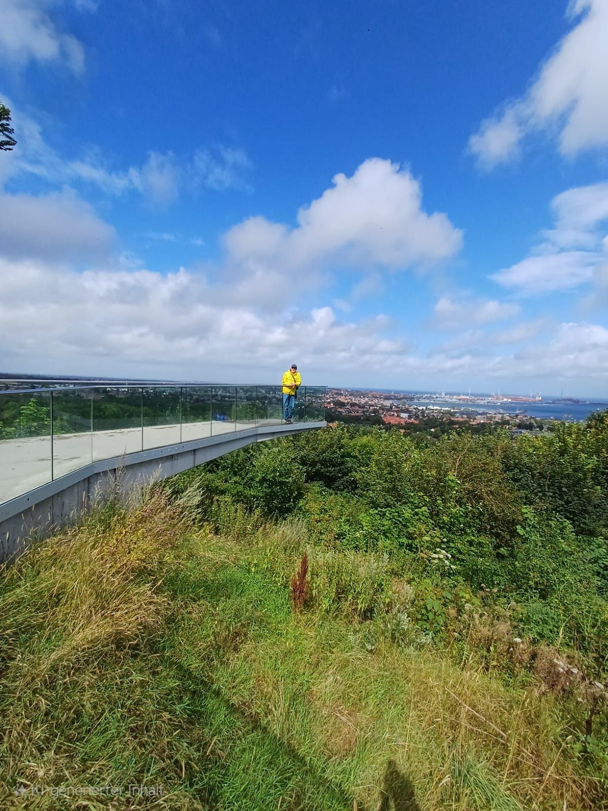 Ein wenig hatte ich noch gehofft, dass es eventuell am Mittwoch doch weitergehen konnte. Aber 6 Bft. in Böen 7 bis 8 mit möglichen Gewittern waren mir dann trotz der Leeküste ein wenig zu viel. So nahmen wir die Gelegenheit wahr, uns noch ein wenig in der Gegend um Frederikshavn herum umzuschauen. Und wir fanden wirklich ein paar nette Sachen. Zum einen gab es den Pikkerbaken. Eine Aussichtsplattform geformt wie Grenen-Odde mit einem tollen Blick auf den Ort und das Kattegat, ein wenig großspurig beworben mit dem Slogan „Skywalk in Frederikshavn“. Sogar Læsø konnte man in der Ferne erahnen. Von dort ging es weiter zu einer Bunkeranlage, die die deutsche Wehrmacht den Dänen hinterlassen hatte. Nach der Eroberung von Dänemark 1940 wurde diese Anlage gebaut. In Teilen dient sie heute immer noch dem dänischen Militär. Viel schöner als die Besichtigung von Bunkern und Luftabwehrgeschützen, war der anschließende Besuch des botanischen Gartens. Eine top gepflegte Anlage mit Pflanzen aus allen Teilen der Welt, die sogar mich als bekennenden Anti-Gärtner sehr beeindruckt hatte. So verbrachten wir auch den zweiten Sturmtag mit netten Aktivitäten und einem Fußmarsch von immerhin 10 Kilometern. Die notwendigen Kalorien dafür hatten wir uns im Møllehuset zwischendurch mit einem Quarkschnittchen samt Aprikoseneis zugeführt.