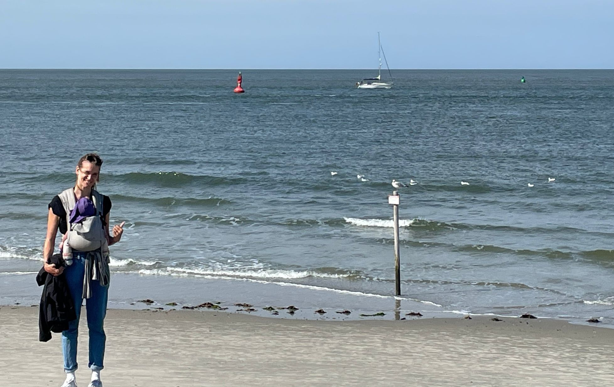 Da ich Norderney nun schon von einigen vorherigen Besuchen kannte, stand mir der Sinn nicht nach ausgedehntem Sightseeing. Ich wollte einfach die Seele ein wenig baumeln lassen und mir ein paar Tage keine Gedanken über Wind, Welle und Gezeit machen. Ein wenig radeln, Mittagsschläfchen, Essen kochen und chillen, das war mein Plan bis zur Ankunft der kleinen Familie mit meinem Enkel Taavi. Und die war am Samstag pünktlich mit der Fähre um 14:00 Uhr. Bevor die drei weiter zum Campingplatz zogen, gab es noch Kuchen und für den kleinen Seemann ein Nickerchen in Opas Koje. Was für ein süßer Kerl, der sich in den letzten Monaten unglaublich entwickelt hatte. Als ich ihn Ende Mai das letzte Mal sah, war er noch ein Neugeborenes. Jetzt, 3 Monate weiter, schon richtig wach und aufmerksam mit den Augen und mit einer herzlichen Lache und einem entzückenden Blick, wenn er gerade mal nicht schrie 😉. Am Abend bin ich dann noch zum Campingplatz ein Stück hinter dem Leuchtturm geradelt und wir haben etwas gekocht und zusammen gegessen. Für den nächsten Tag hatten wir uns eine kleine Wanderung vom Campingplatz aus über die Weiße Düne zur Stadt vorgenommen. Das haben wir dann auch so gemacht. Im Ort gab es dann noch ein Fischbrötchen und dann mussten sich leider unsere Wege trennen… Schon auf unserem Spaziergang bemerkte ich den Anflug eines Infektes. Kratzen im Hals, Niesen und Fiebergefühl. Ob nun Covid oder Grippe, egal. Hier waren nun die Familientage auf Norderney recht schnell wieder zu Ende, wollte ich nicht die drei mit meinen Viren in Mitleidenschaft ziehen. Traurig, traurig. Also zurück zum Boot, Fieber messen (nicht sehr hoch, aber doch 38+) und ab in die Koje.